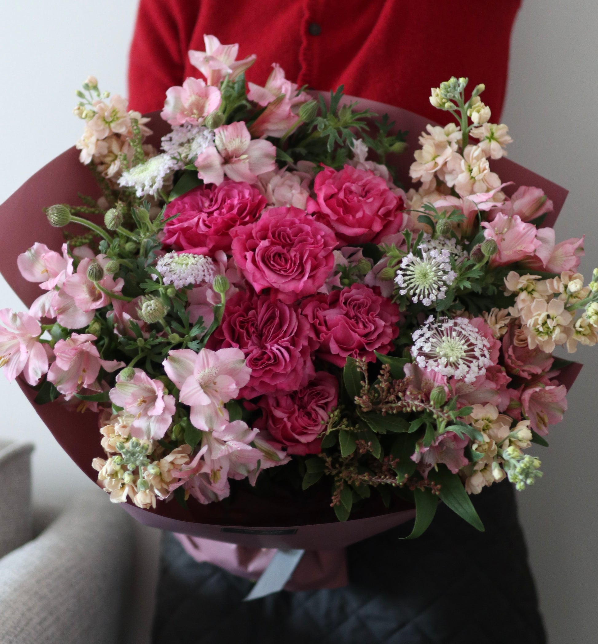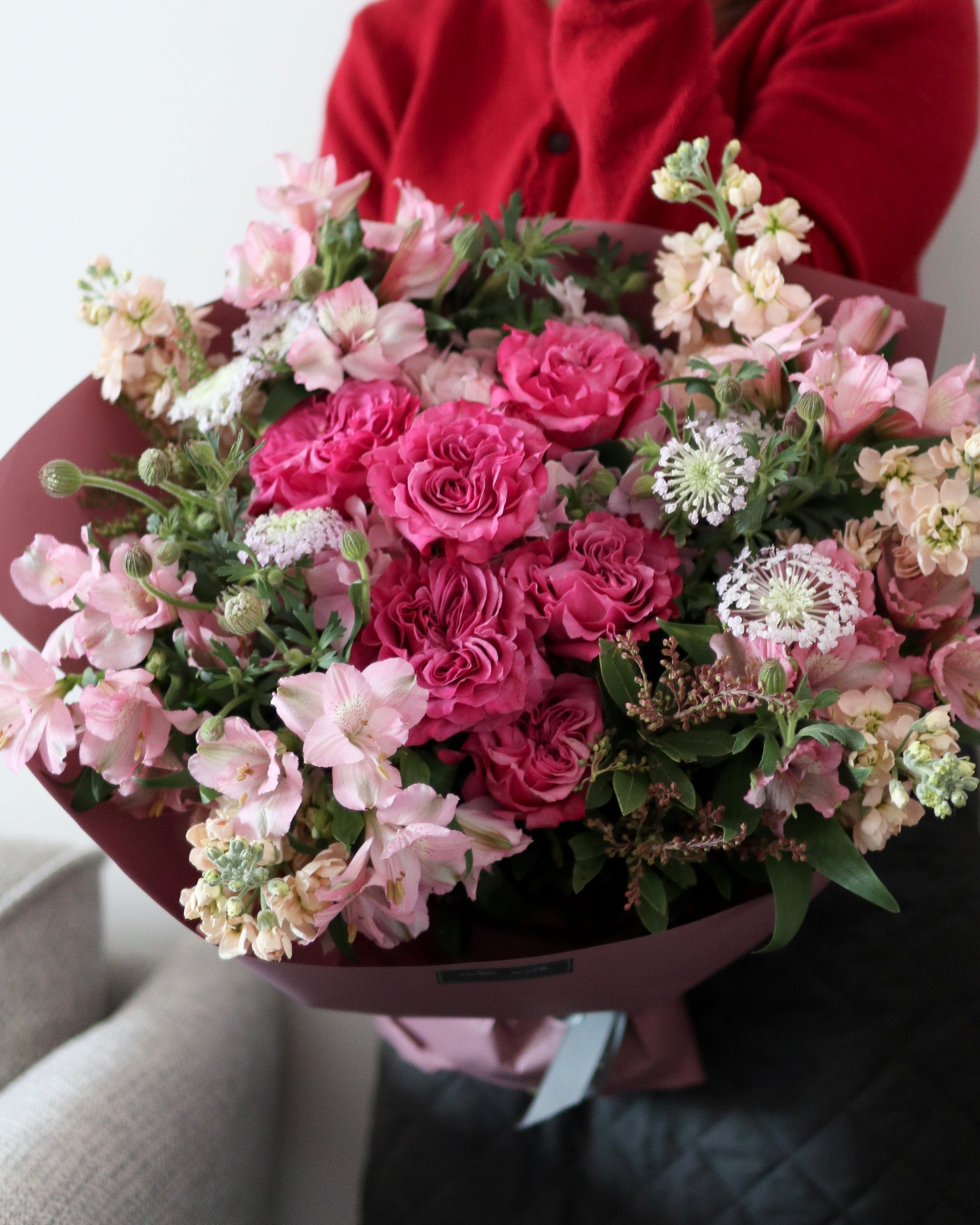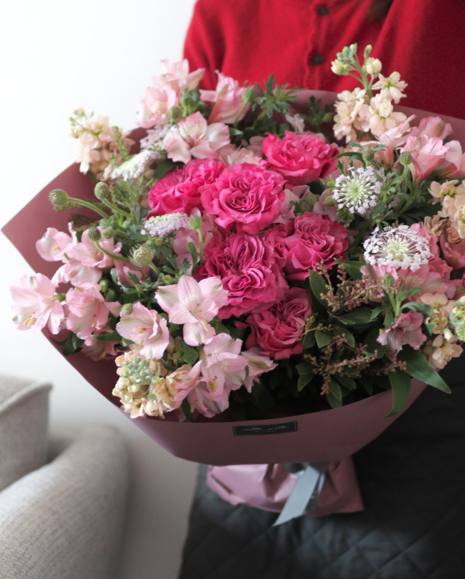 “MY QUEEN” consists of high-quality imported rose, alstroemerias, seasonal flower filters.